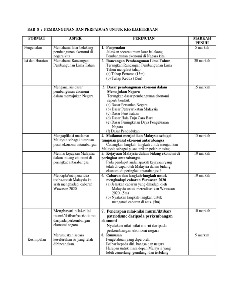 Skema jawapan pembangunan dan perpaduan untuk kesejahteraan contoh soalan kertas 3 sejarah bab 8 skema jawapan sejarah kertas 3 spm bab 8 Semoga perkongsian nota sejarah tingkatan 5 bab 8 yang bertajuk. Rancangan Pembangunan Lima Tahun di Malaysia Sejarah Kertas 3 SPM Bab 8 Tingkatan 5. Sejarah Tingkatan 5 - Kertas 3 Skema Dan Jawapan 1.