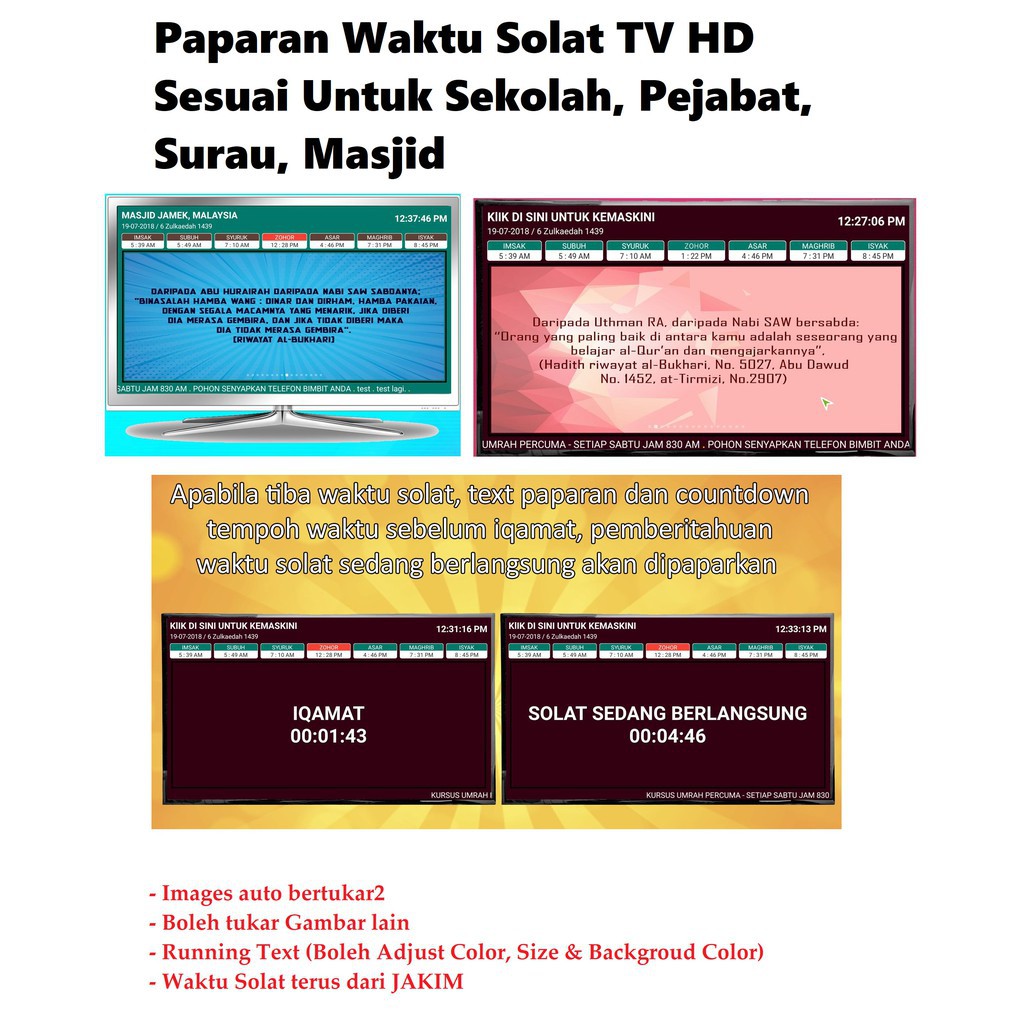 Paparan Jam Waktu Solat Tv Hd Untuk Surau Masjid Sekolah Pejabat Restoran Rumah Shopee Malaysia